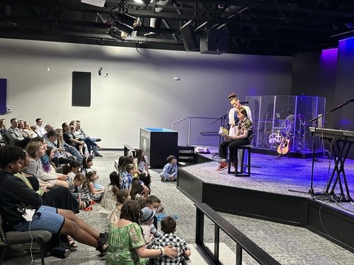 Our weekly Sunday worship service begins at 9:00 AM. On most weeks, the Kids Min team escorts our little ones into the main worship center for the first 2-3 worship songs so that we are all worshipping together. After that, they return to the dedicated Kids Min area for their age-appropriate lessons.